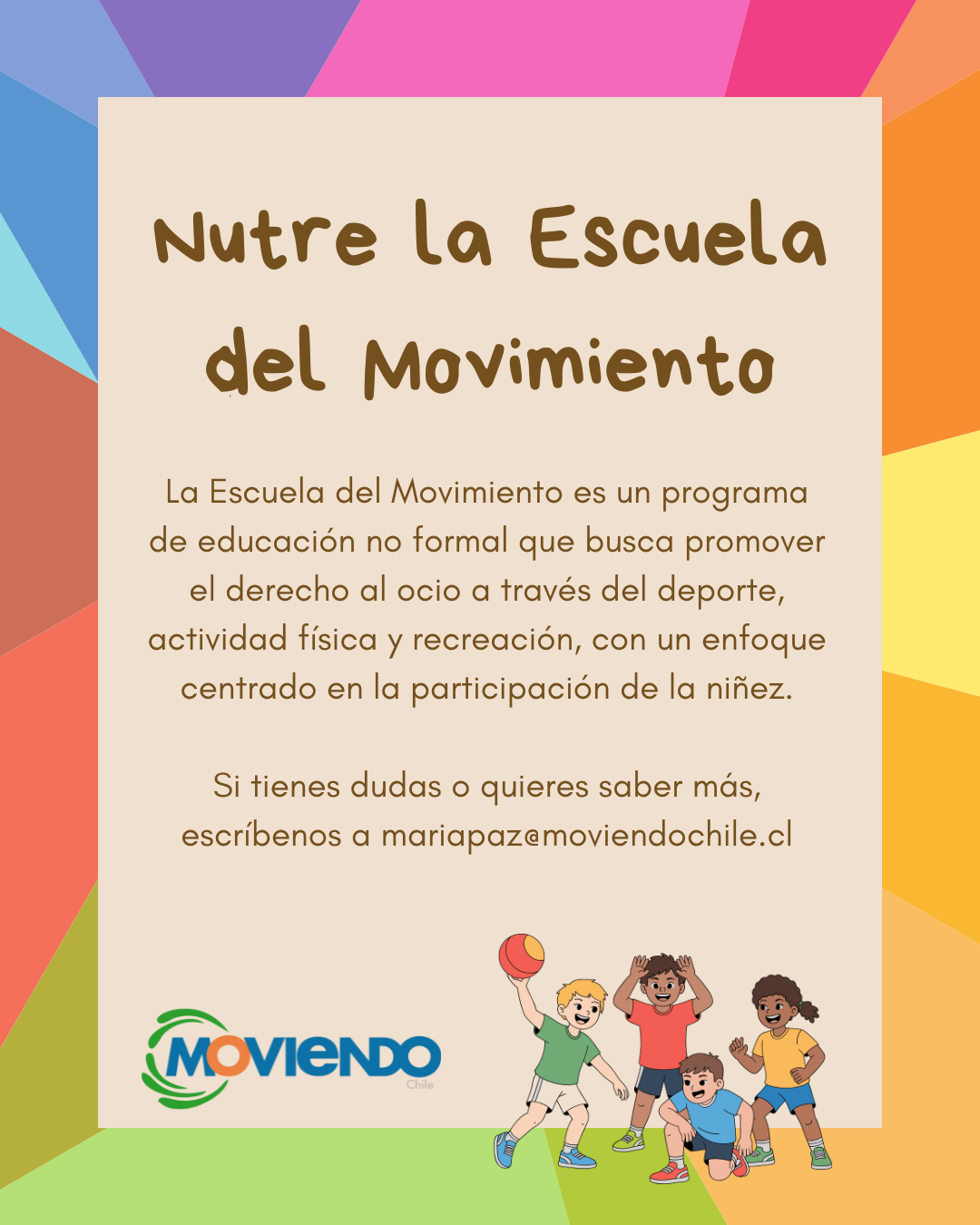 Moviendo es una Organización No Gubernamental Sin Fines de Lucro que nace desde la motivación de un grupo de amigos(as) que promovemos el derecho al ocio a través de la práctica del deporte, actividad física y recreación. Contraria a la visión del ocio como un aspecto negativo, planteamos que es una dimensión necesaria para nuestra vida y que puede ser un espacio de generación de vínculos para la construcción de una sociedad más justa. Ver Más